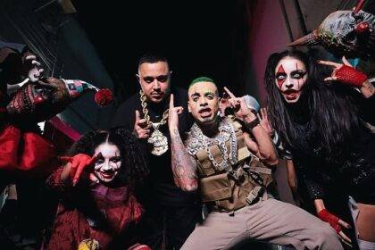 MC Kauan, caracterizado como o coringa (ao centro) durante as gravações do…