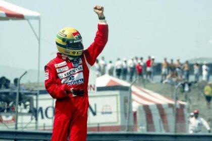 Senna comemora após vitória na temporada de 1988, ano do primeiro campeonato…