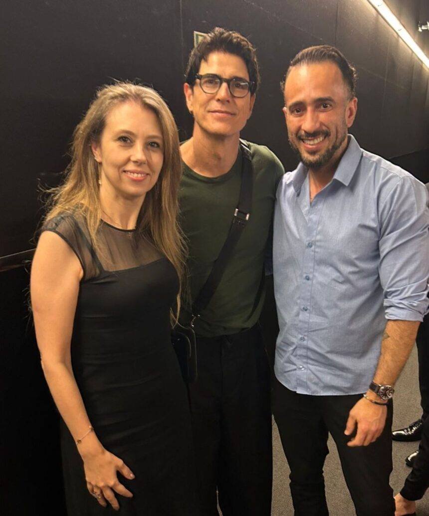 Charles Hermann marcou presença na pré-estreia do novo trabalho de Reynaldo Gianecchini, realizada em São Paulo. O estilista, que já criou peças sob medida usadas pelo ator, foi convidado para o evento e posou ao lado de Gianecchini e da diretora Erica Bernardini.