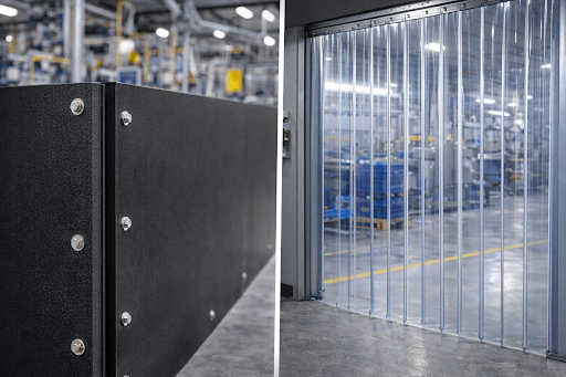 A cortina de PVC é uma solução muito utilizada para separar ambientes sem impedir a circulação. Sua estrutura é formada por tiras flexíveis que permitem a passagem de pessoas e equipamentos de forma prática.